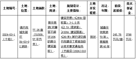 綿竹市城東新區Db-03-02地塊1宗國有建設用地使用權拍賣出讓公告