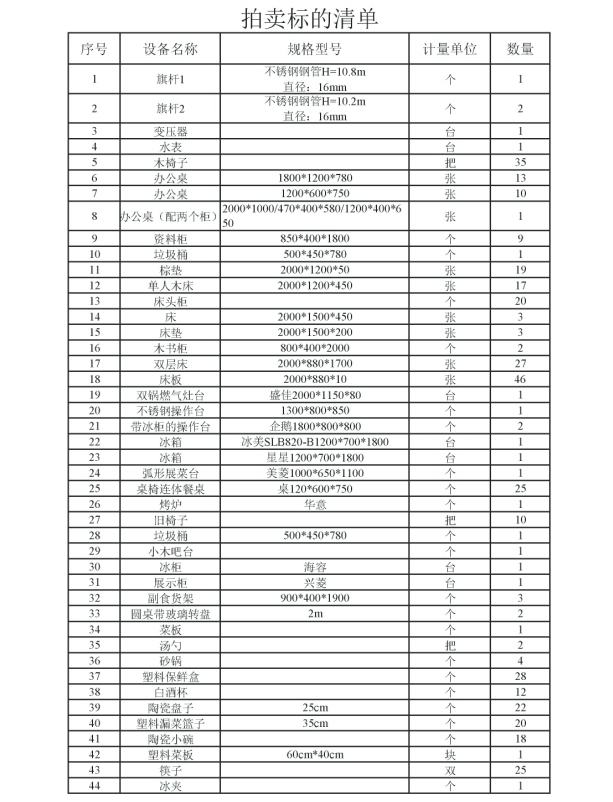 二、標的展示時間及地點:2025年8月21日至2025年9月18日17時止在標的所在地展示。廢舊物資委托方和拍賣人均不承擔標的物任何瑕疵擔保責任,請競買人現場實地查看驗貨(包括聘請專業人士鑒定),拍賣成交后委托方以現場實有物資移交給買受人,無論數量增減或質量優劣,成交價均不作調整。看樣聯系人:王先生 電話:18780800302
