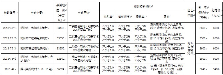 簡陽市公共資源交易中心5宗國有建設用地使用權拍賣會